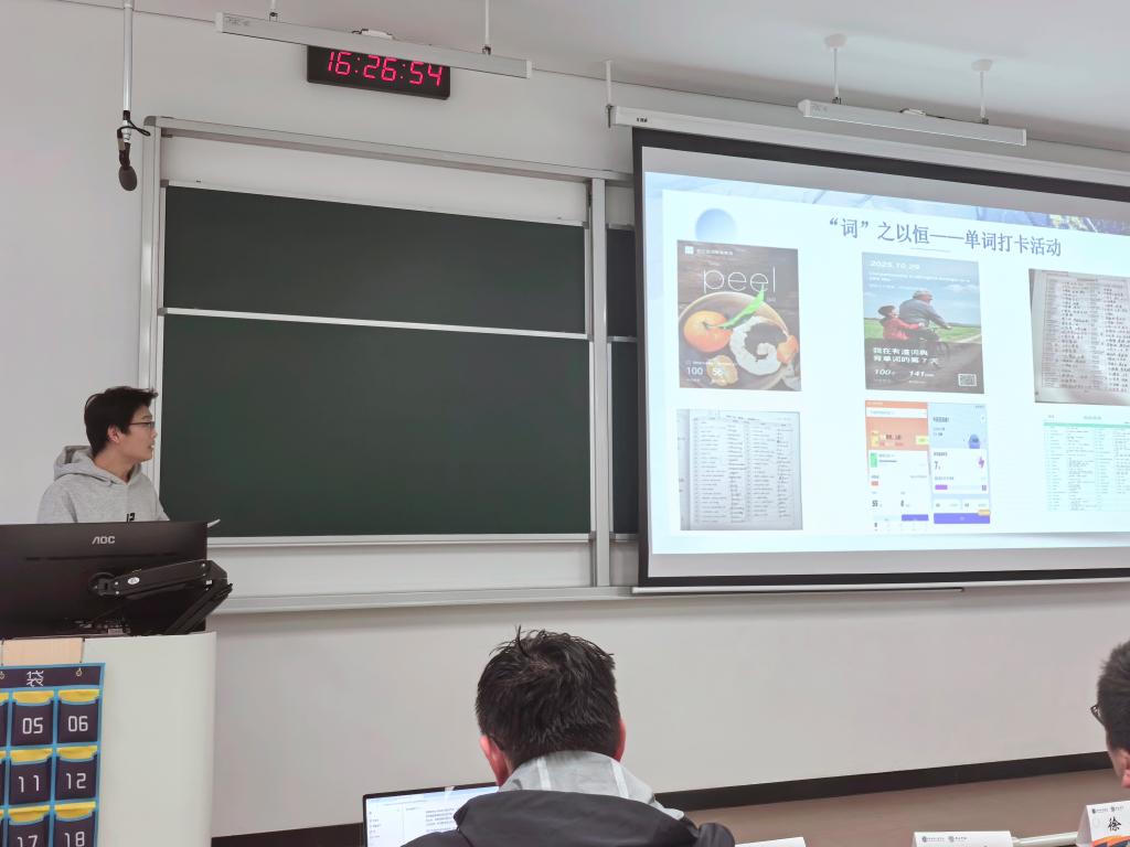 汇报环节结束后,学院学生会学生发展部代表曹帅同学登台发言,就“学风建设月”活动进行了汇报总结。他介绍,学生发展部策划了一系列贴近同学、富有意义的活动,旨在通过日常积累和习惯养成,在全院范围内进一步激发学习热情,巩固专业基础,营造比学赶超的积极氛围。