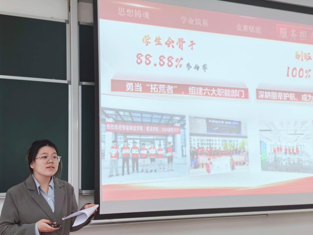 汇报会上,智能制造学院(君远学院)2023级、2024级各班级按序上台进行展示汇报,通过精心制作的PPT和富有感染力的现场讲解,全面而生动地展示了各自班级在思想引领、班风建设、学业成绩、创新实践、荣誉获奖等方面的丰硕成果与鲜明特色。汇报过程精彩纷呈,数据详实,案例生动,充分展现了我院学子积极向上的精神风貌和扎实全面的综合素养。评委根据汇报内容的逻辑性、数据的准确性、展示的感染力及班级特色的鲜明度进行现场评分。