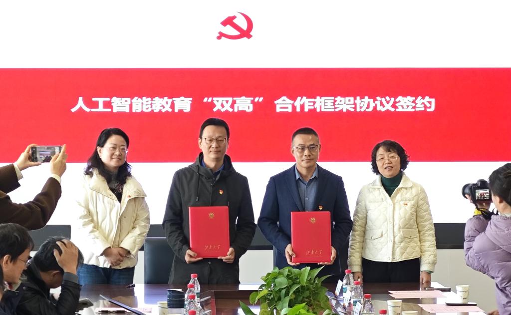 12月4日上午,智能制造学院与江苏省天一中学新吴分校党建共建暨人工智能教育合作签约仪式在江南大学霞客湾校区举行。江苏省天一中学党委副书记(主持工作)兼新吴分校校长冯冬雁,新吴分校副校长金春敏、张永辉,智能制造学院党委书记王冰,党委副书记徐静,副院长蒋毅、宿磊,君远工程中心主任宋飞虎及两校党员教师代表出席活动。