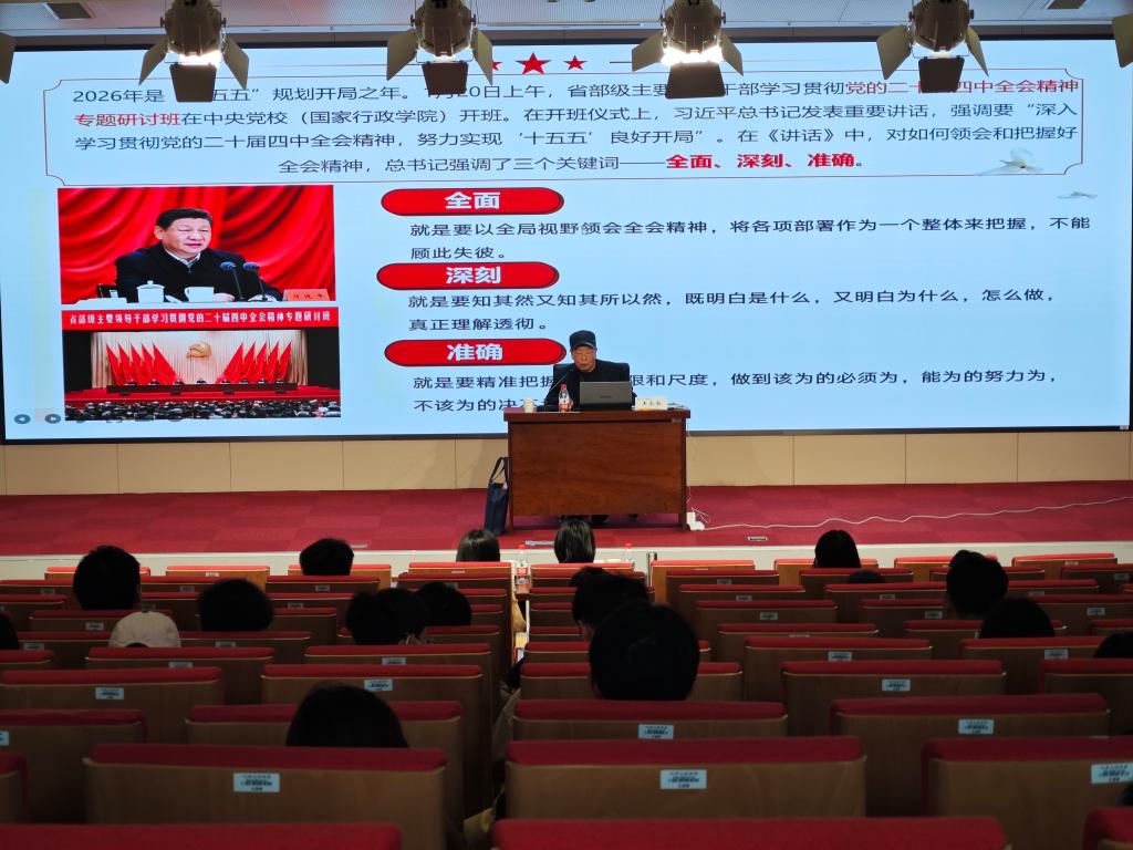 主题党课环节,王永南老师以深入学习贯彻党的二十届四中全会精神为主题作专题辅导。他围绕全会重大意义、“十五五”规划建议核心部署,结合“全面、深刻、准确”的学习要求,重点解读了建设现代化产业体系、高水平科技自立自强等战略任务。授课中,他系统阐释了现代化产业体系的内涵与建设路径,阐明高水平科技自立自强的核心要求与实践举措,强调教育、科技、人才一体化推进的重要性,并结合新能源、新材料、量子科技、低空经济等前沿领域,引导学员认清时代使命、强化专业担当。结合大学生党员发展实际,王永南老师勉励学员坚守入党初心、永葆党员先进性纯洁性,努力成长为德才兼备的高素质创新人才,在强国建设、民族复兴征程中勇担重任。