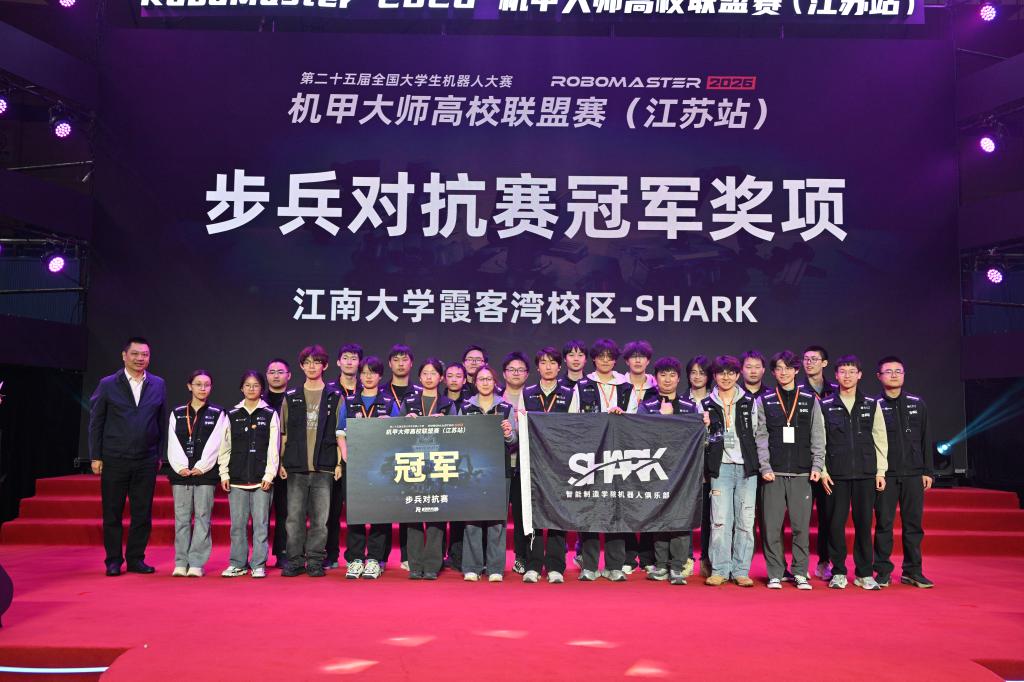 3月29日晚,江阴市体育馆灯火璀璨,第二十五届全国大学生机器人大赛RoboMaster2026机甲大师高校联盟赛(江苏站)圆满落下帷幕。主场作战的江南大学霞客湾校区SHARK战队以惊艳表现闪耀赛场,一举斩获步兵对抗赛冠军、3V3对抗赛亚军、工程挑战赛一等奖三项重磅荣誉,创下江南大学历史最佳战绩,在家门口为学校机器人赛事荣誉簿上再添一座里程碑。本次赛事为期三天,吸引了来自浙江大学、南京大学、武汉大学等全国31所高校的685名...