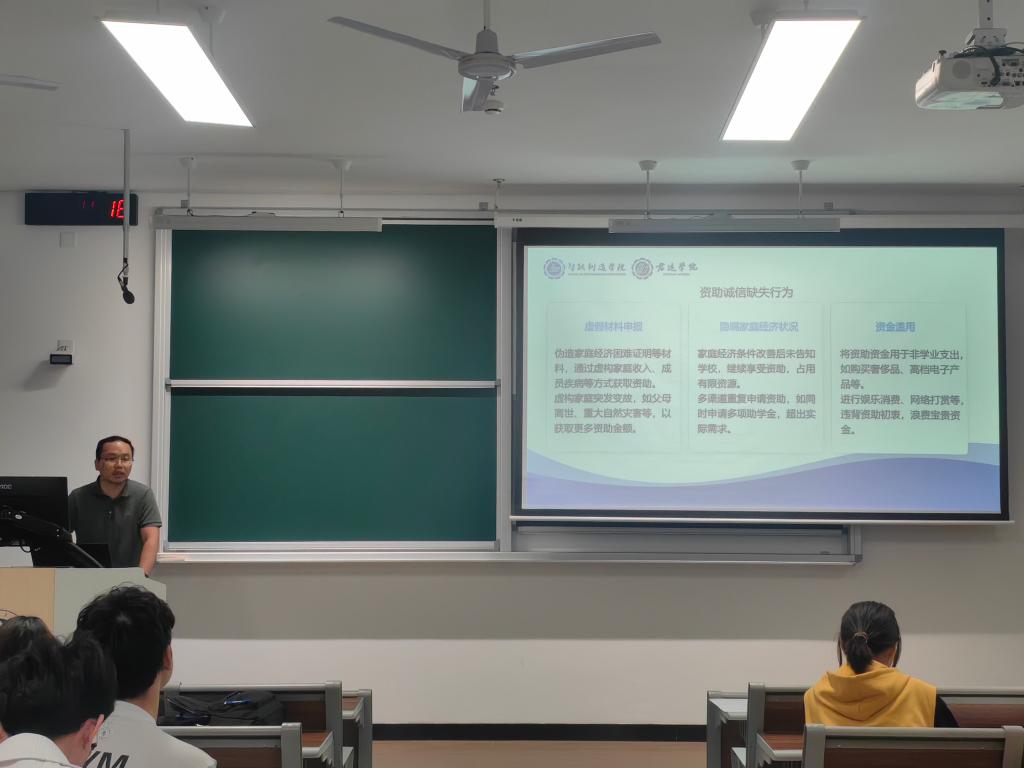 精准资助守初心,诚信为本暖人心。班会上,各班班主任通过系统梳理本年度家庭经济困难学生认定流程,详细解读认定机制,强调每一个环节都以诚信为基石,确保资助对象精准无误。针对资助中可能出现的信息不实、材料造假等问题,班主任带领学生逐条学习《学生资助诚信公约》,结合往届学生诚信受助的典型案例,引导同学们认识到如实申报不仅是个人品德的体现,更是对有限资助资源的珍视。通过诚信教育与规范管理相结合,学院不仅让真正有需要的学生获得帮扶,更让诚信意识扎根于每一位学子心中,让资助工作既有制度的刚性,更有育人的温度。