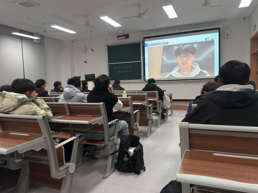 学长助力,破解专业课程难点。针对前期调研中大一学生普遍反映学习困难的《机械制图》课程,学院组织大二的宋金羽学长精心录制了学习经验分享视频。各班在班会中组织观看了该视频,视频内容聚焦课程难点突破与学习方法,特别是强调了多动手绘图、善用SolidWorks等软件以培养空间想象能力的重要性。这一环节为同学们后续攻克专业难点课程提供了及时而有力的支持。