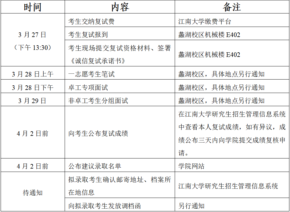 缴费说明:进入复试考生在学院规定的时间内登录“江南大学缴费平台”交纳复试费用,复试收费标准:80元/生。考生搜索微信公众号“江南大学财务处”,在“业务办理”中选择“学生缴费”,或登录“江南大学网上缴费平台”(网址:http://pay.jiangnan.edu.cn/payment/);用户号在“学工号”输入正确的身份证号,初始密码(9位):“SS”+准考证编号后4位+“@fs”,如“SS1234@fs”(友情提醒:考生账号已开通,切勿自行注册)。按照提示缴费,并打印或截图保存付费凭证。